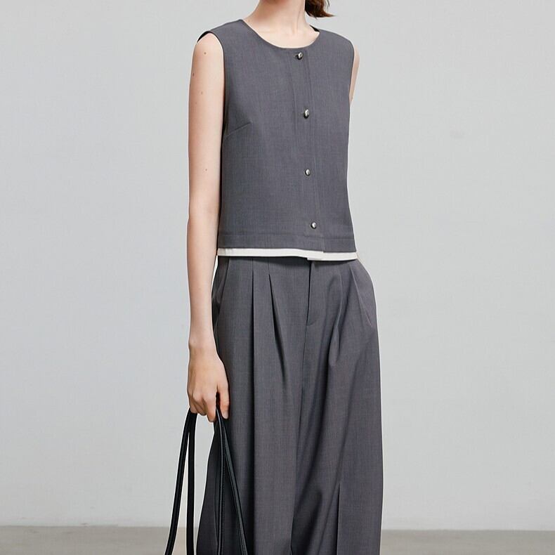 【Set-up】Sleeveless Dark Gray Set Up / ノースリーブ ダークグレー セットアップ