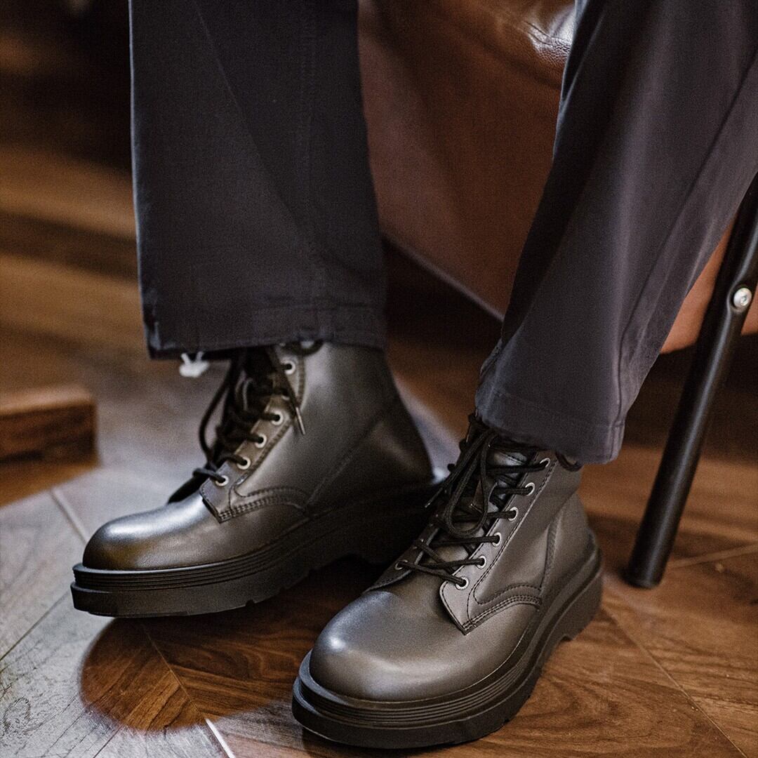 厚みのあるソールで、存在感を放つブラックブーツ。