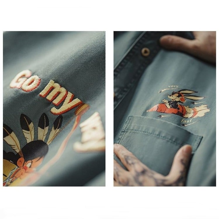 レトログリーンの色合いが映える長袖シャツ。