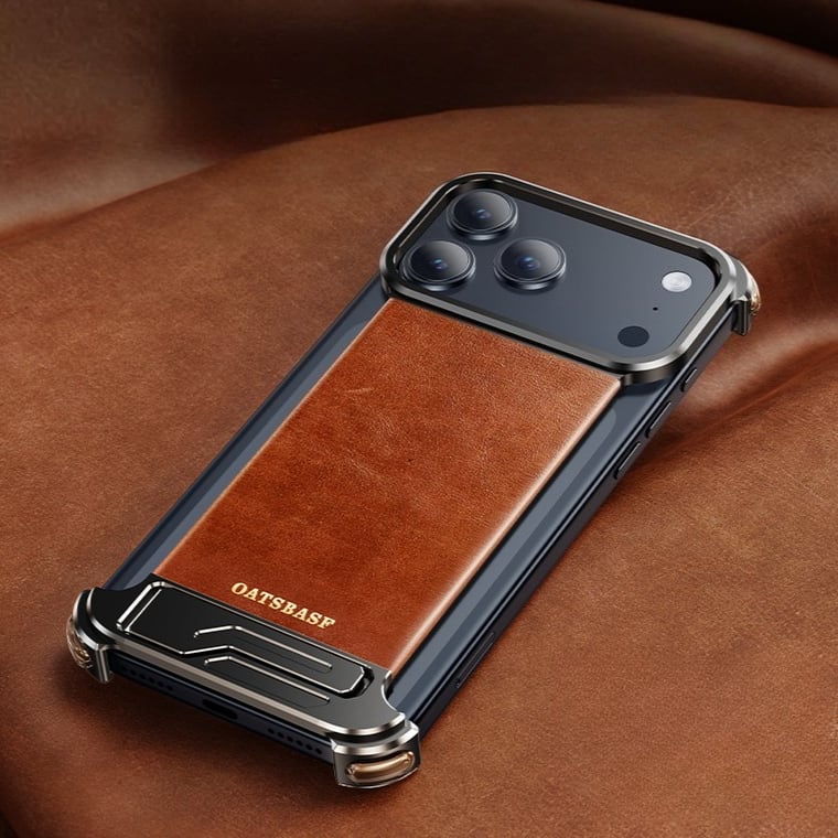 ◆iPhone 17/Pro/Pro Max◆ Genuine Leather Aluminum Kickstand Frameless Phone Case / 本革 アルミニウム スタンド フレームレス スマホケース
