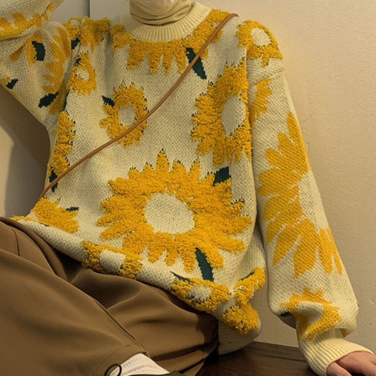 【UNISEX】Sunflower Knitted Sweater / ひまわり ニット セーター