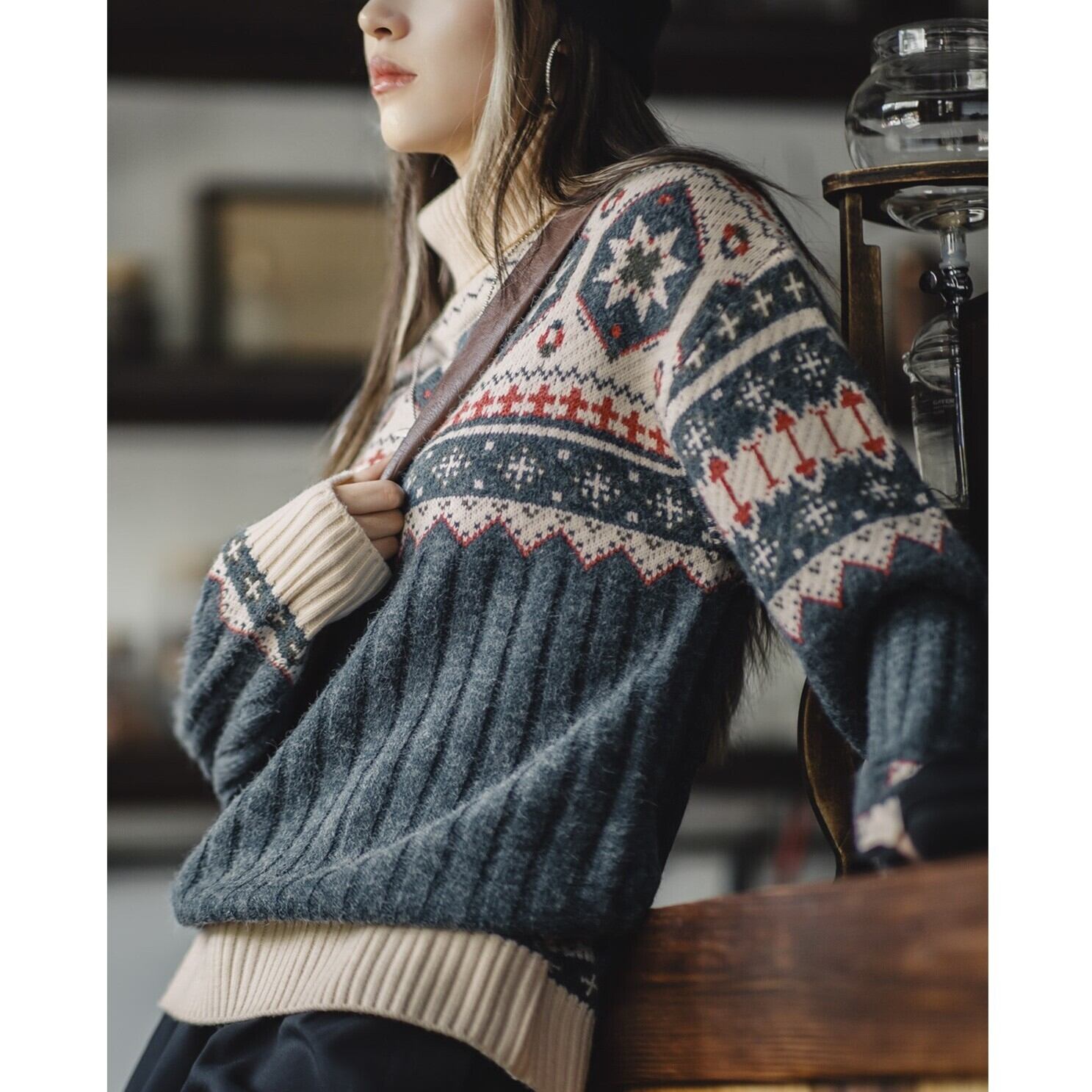 【UNISEX】Nordic Pattern Turtleneck Knitted Sweater / ノルディック パターン タートルネック ニット セーター