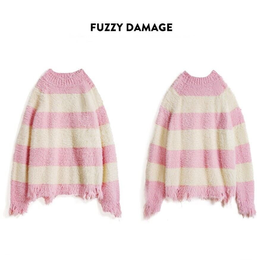 Pink Striped Knit Sweater / ピンク ボーダー ストライプ ニット セーター