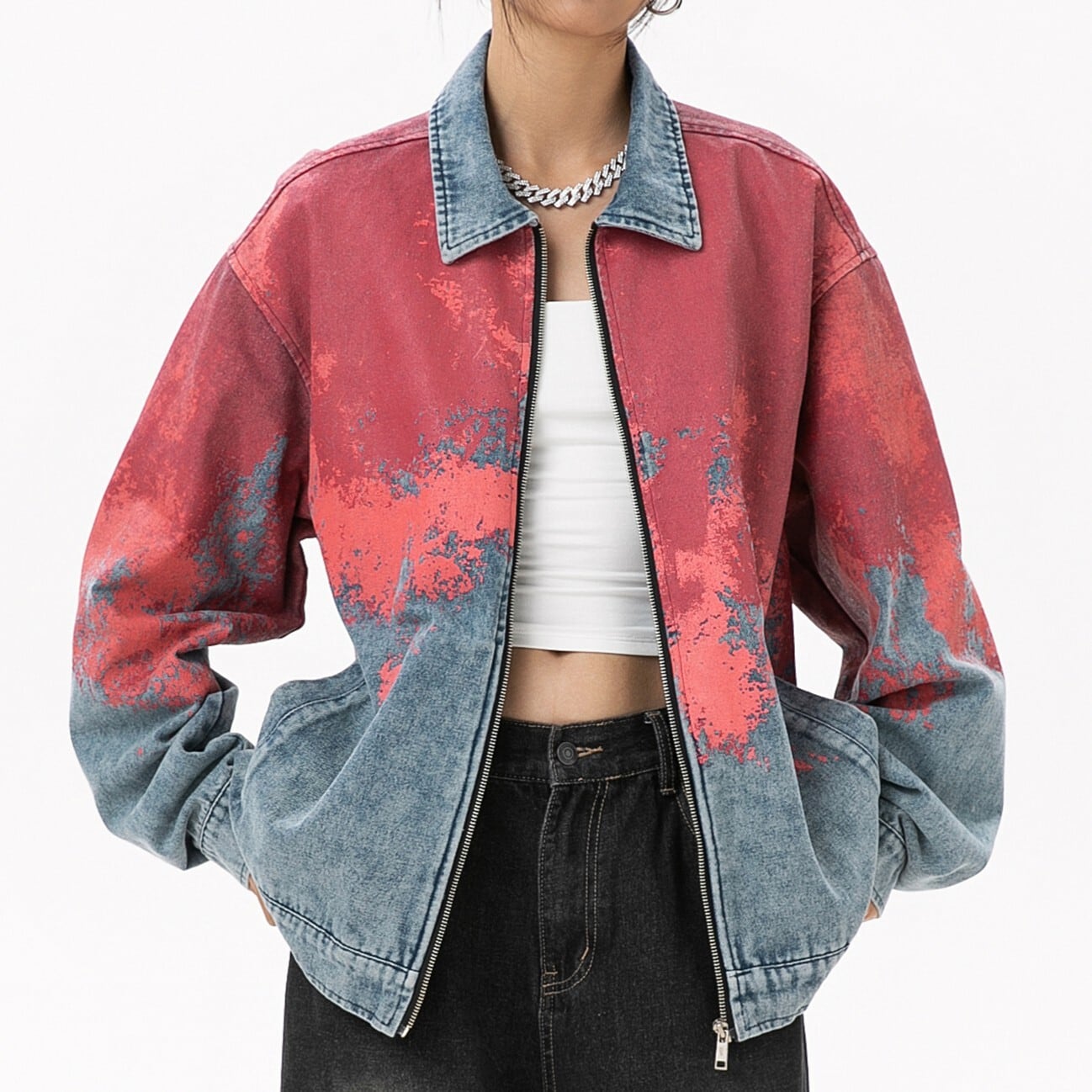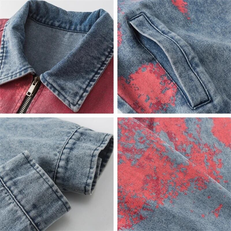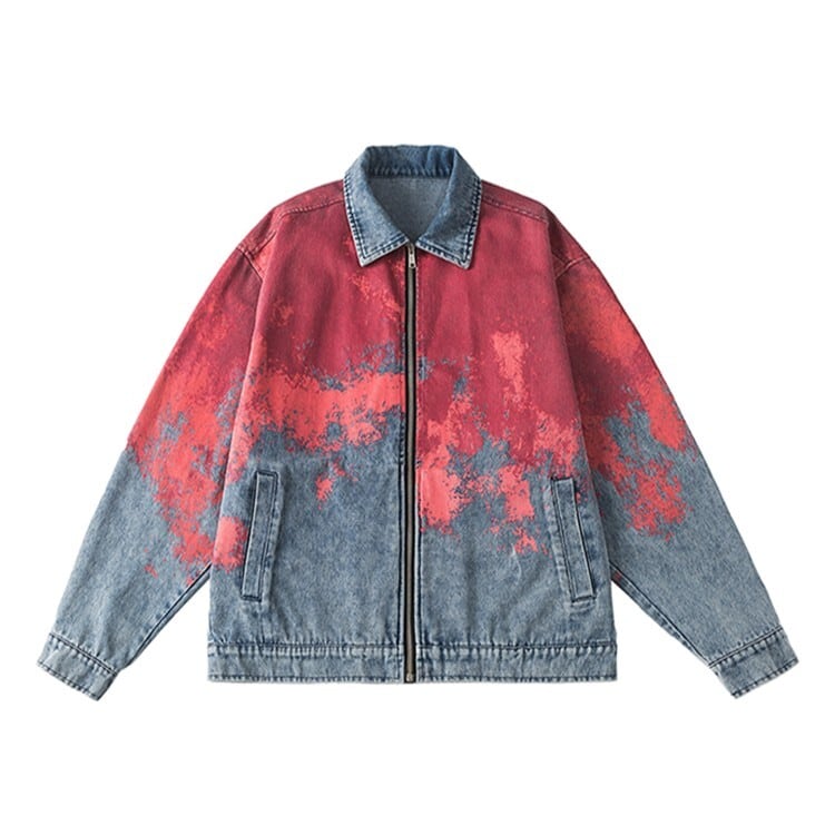 大胆なレッドのタイダイが主役になる、存在感たっぷりのデニムジャケット。