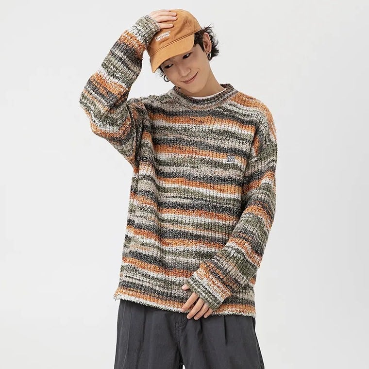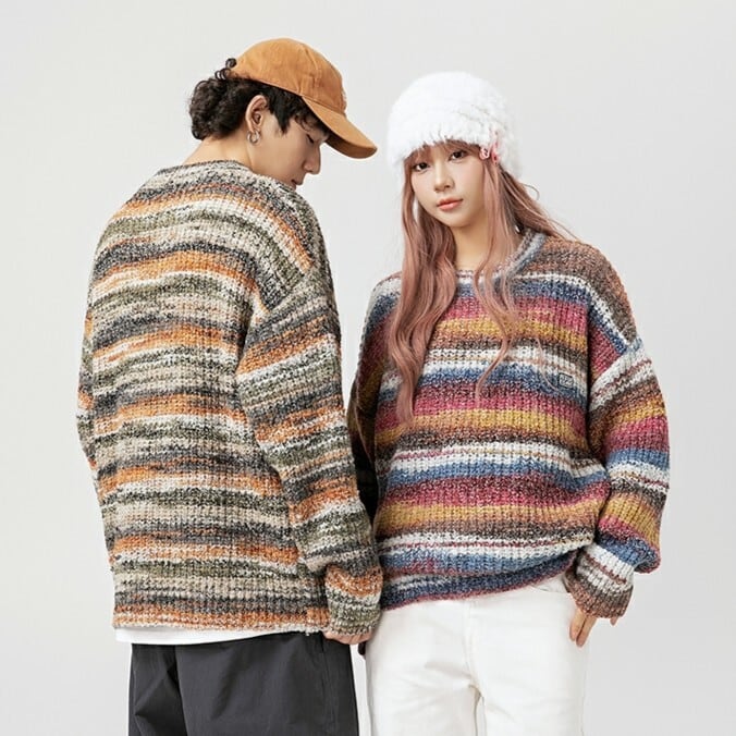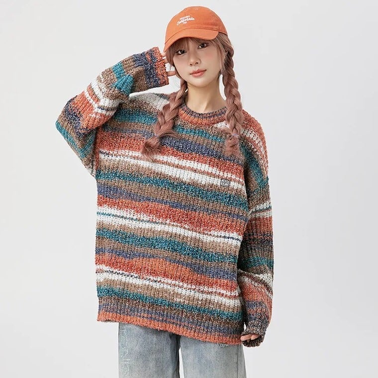 【UNISEX】 Stripe Rainbow Streetwear / ユニセックス ストライプ レインボー セーター
