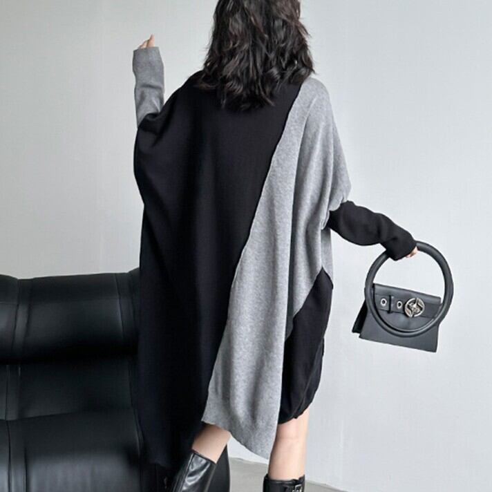 Asymmetrical Turtleneck Knit Sweater Dress / アシンメトリー タートルネック ニット セーター ドレス ワンピース