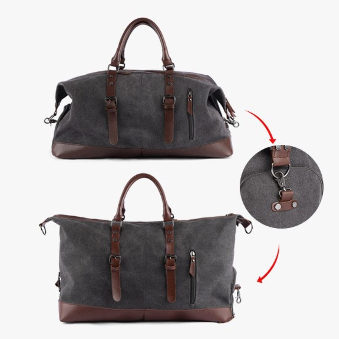 キャンバス素材を使用した、コンパートメントバッグ。