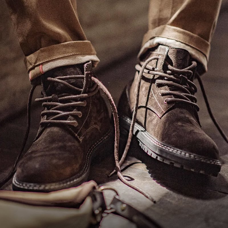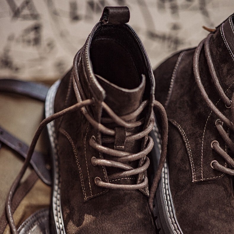上質な本革スエードの風合いが際立つ、クラシックなレースアップブーツ。