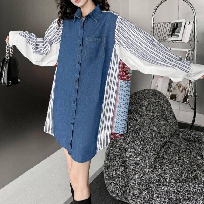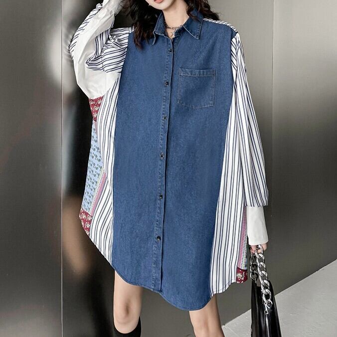 カテゴリー:レディース ウィメンズ / トップス シャツ ワンピース / デニム 長袖 パッチワーク