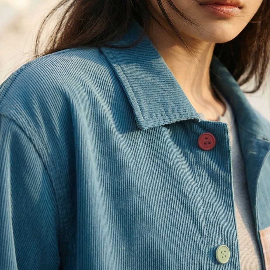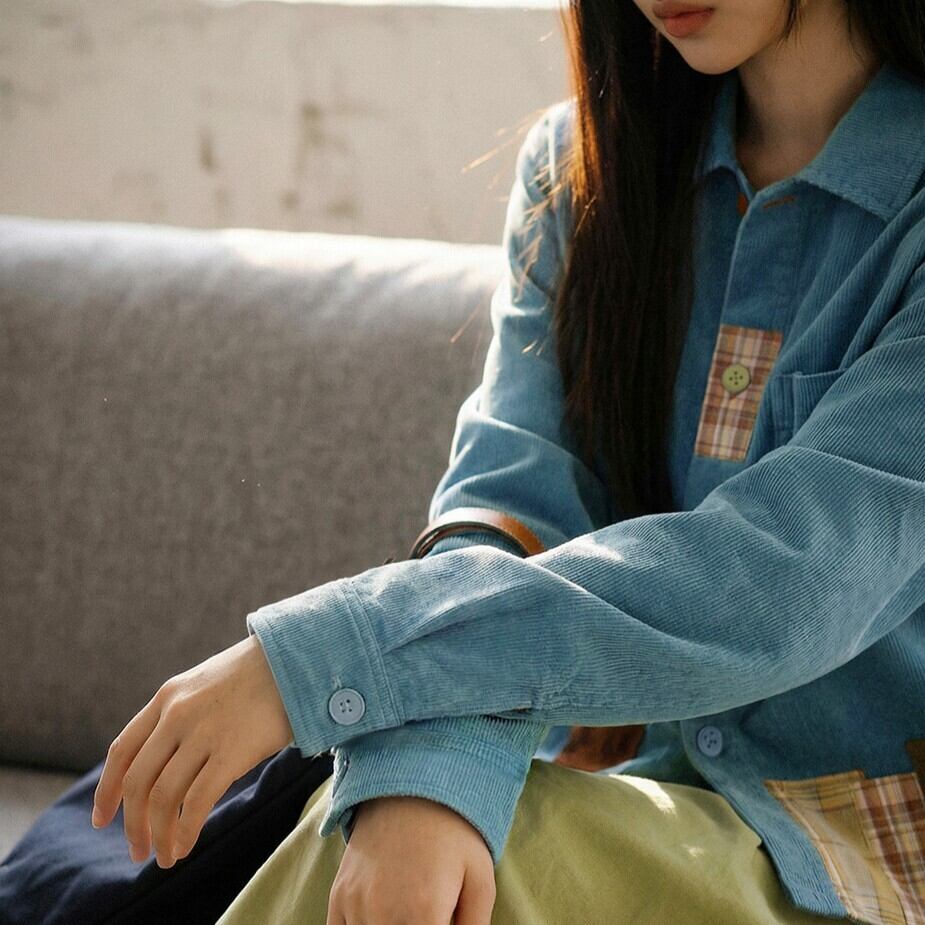 パッチワークデザインが目を惹く、コーデュロイシャツ。