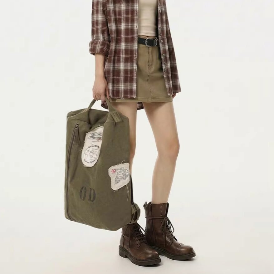 ヴィンテージライクなパッチデザインが印象的なバックパック。