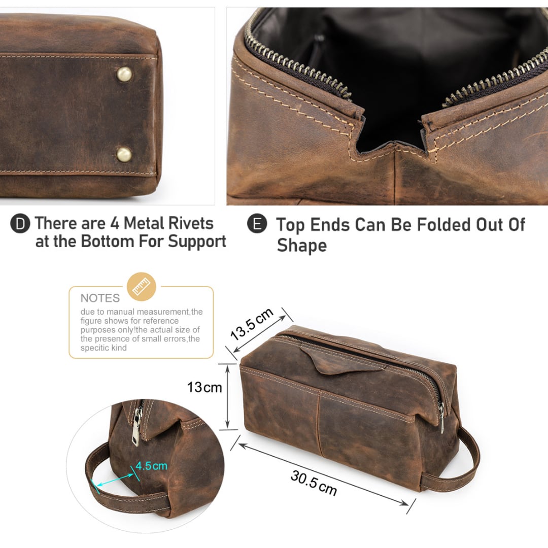 ヴィンテージ感のあるクレイジーホースレザーを使用したトラベルポーチ。