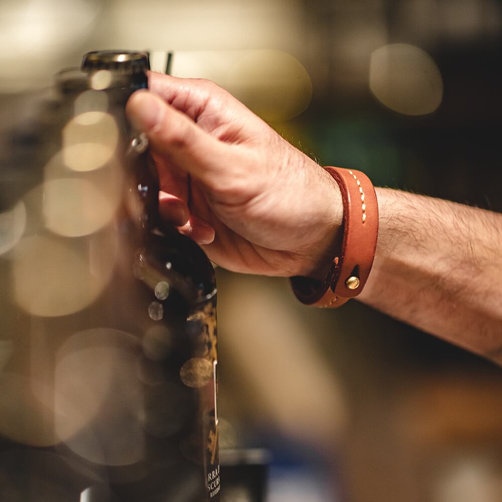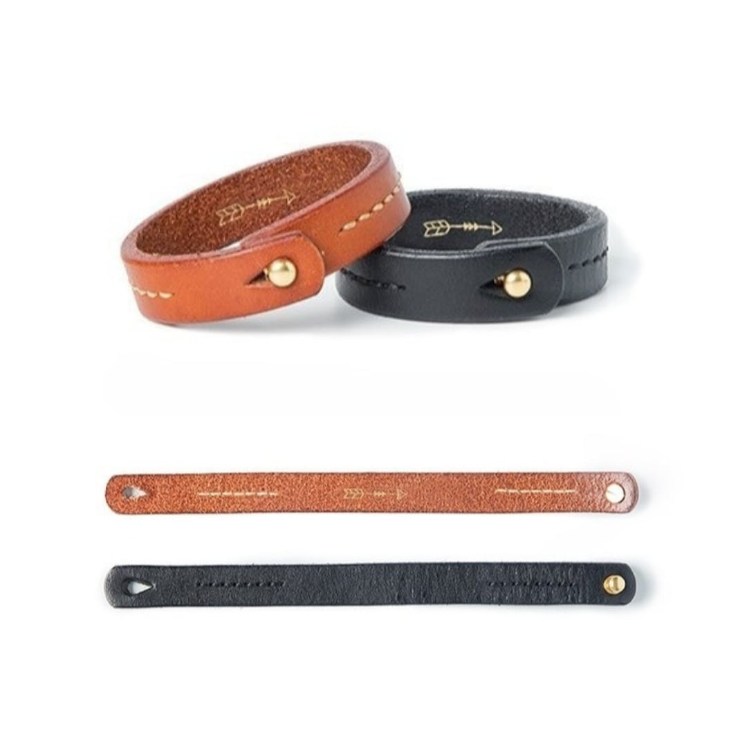 上質なレザーとカッパーボタンを組み合わせた、ミニマルなブレスレット。