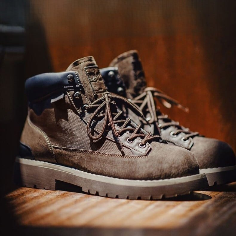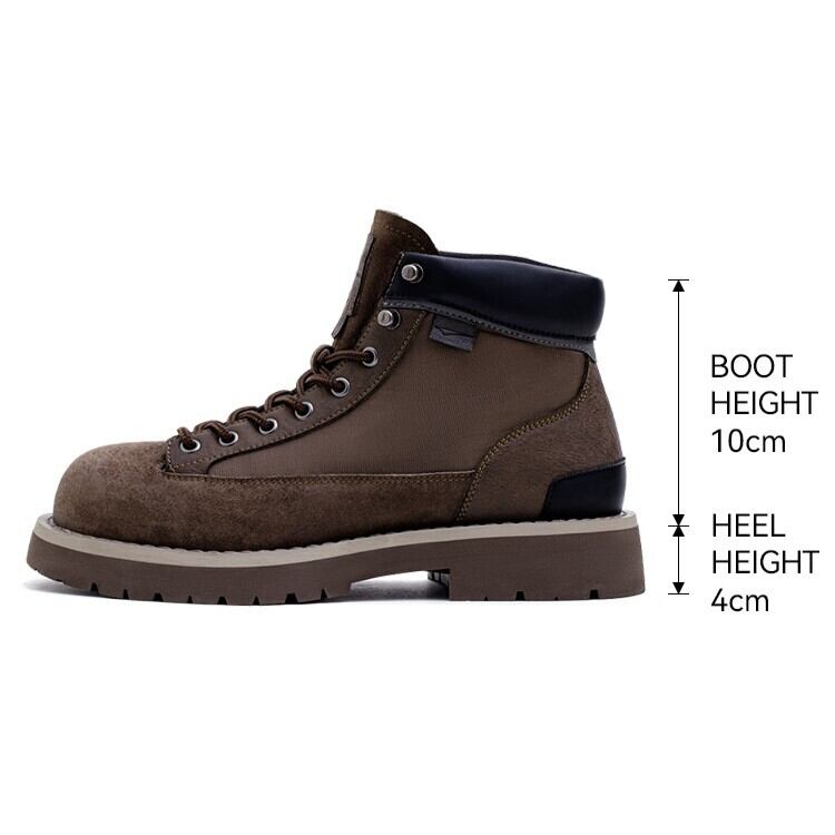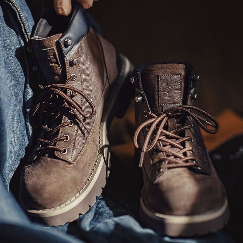 スエード素材を使った、ワークテイストのハイトップブーツ。