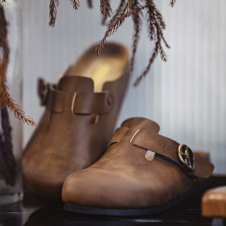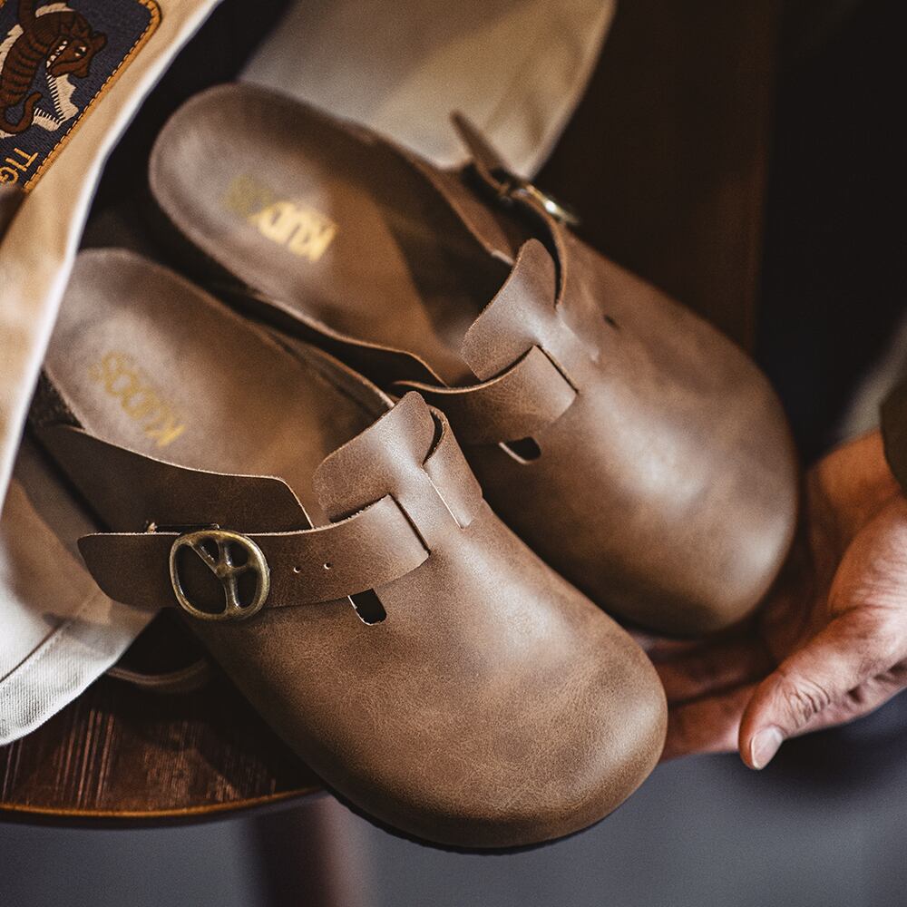 クレイジーホースレザー特有の風合いが魅力のクロッグサンダル。