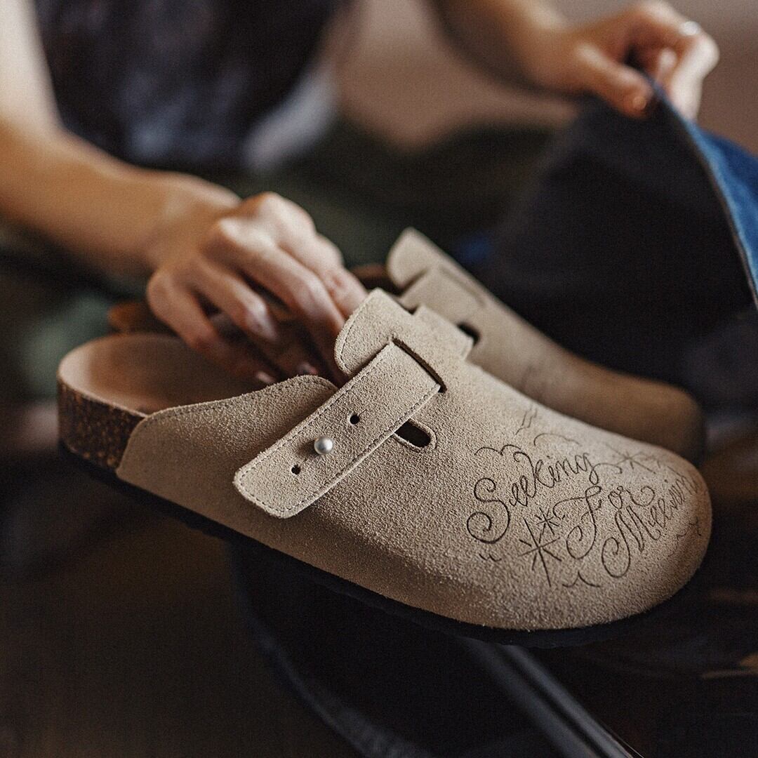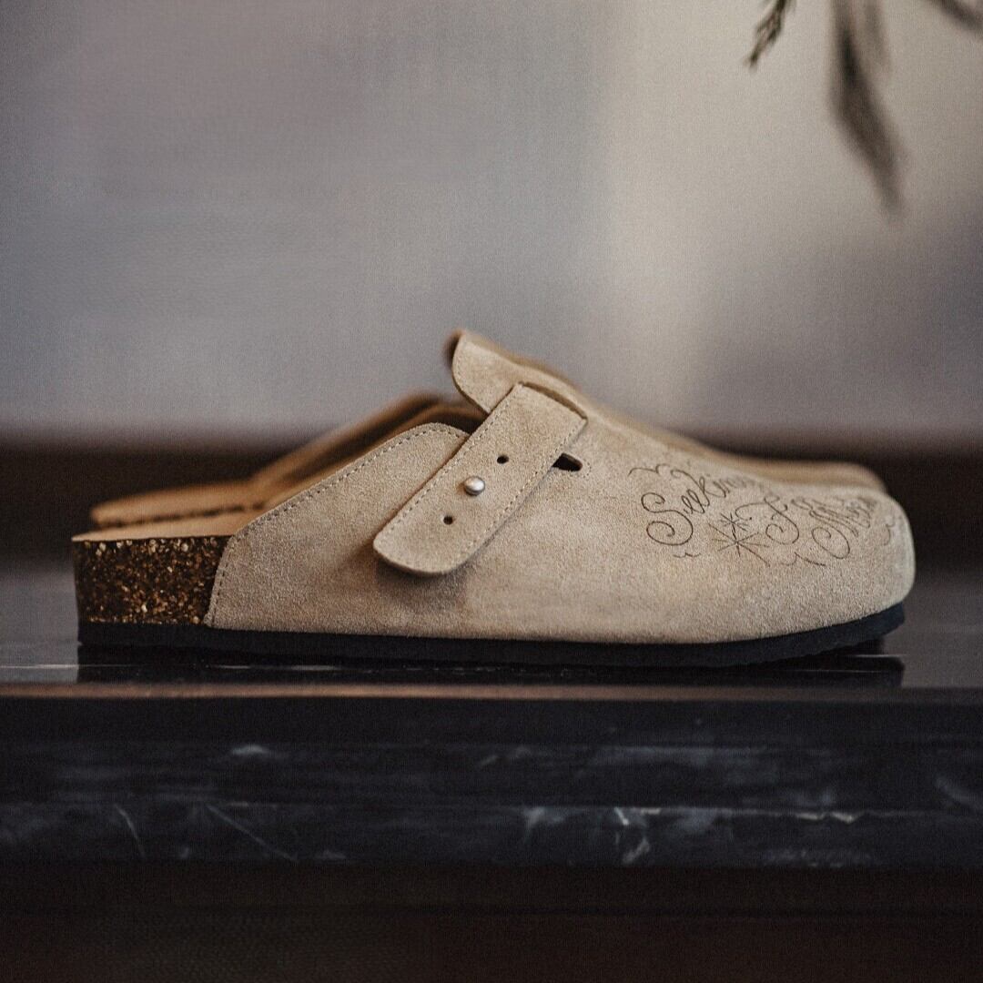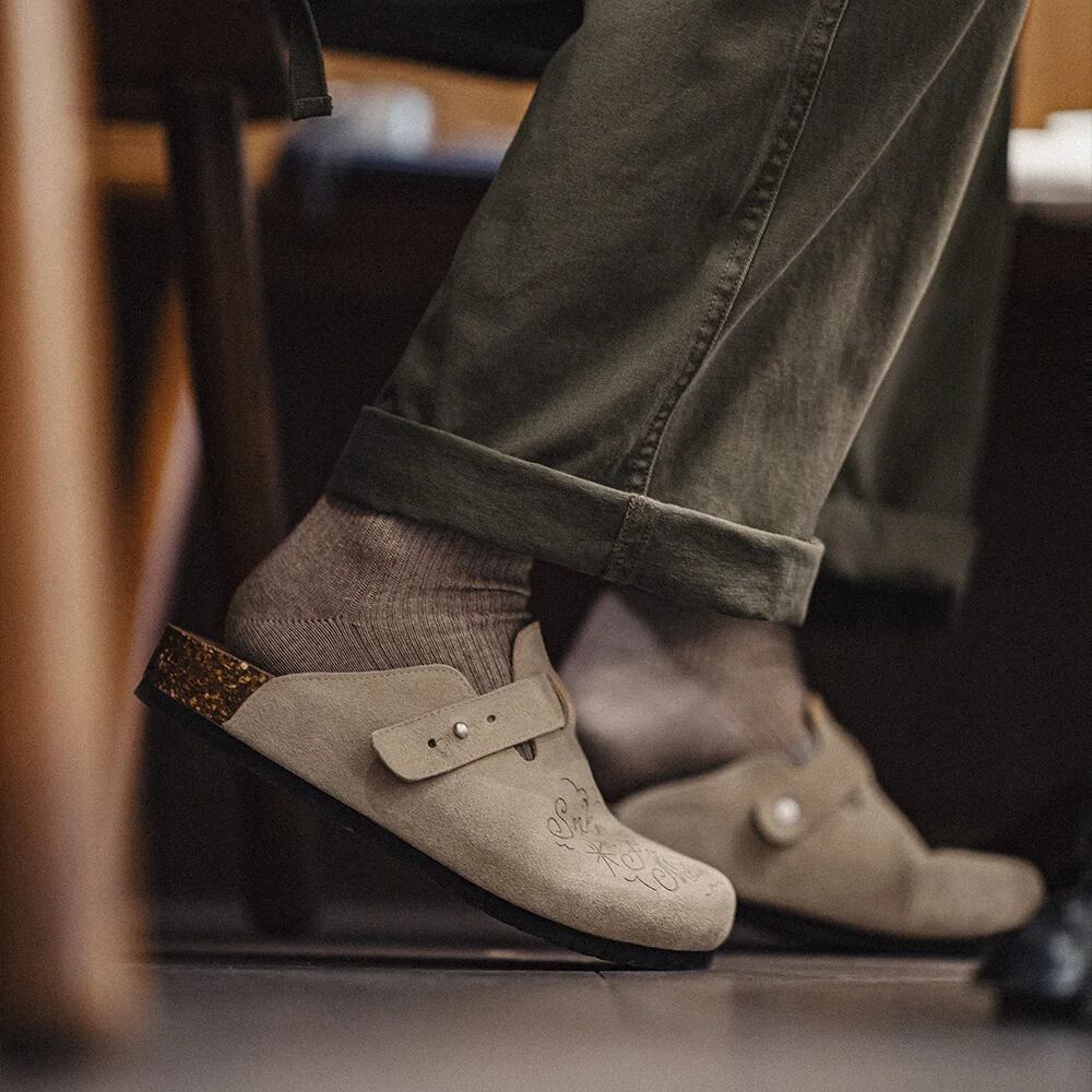 スエード素材のやわらかな風合いが魅力のクロッグサンダル。