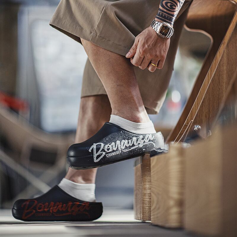 防水仕様で、雨の日でも安心して履けるクロッグサンダル。