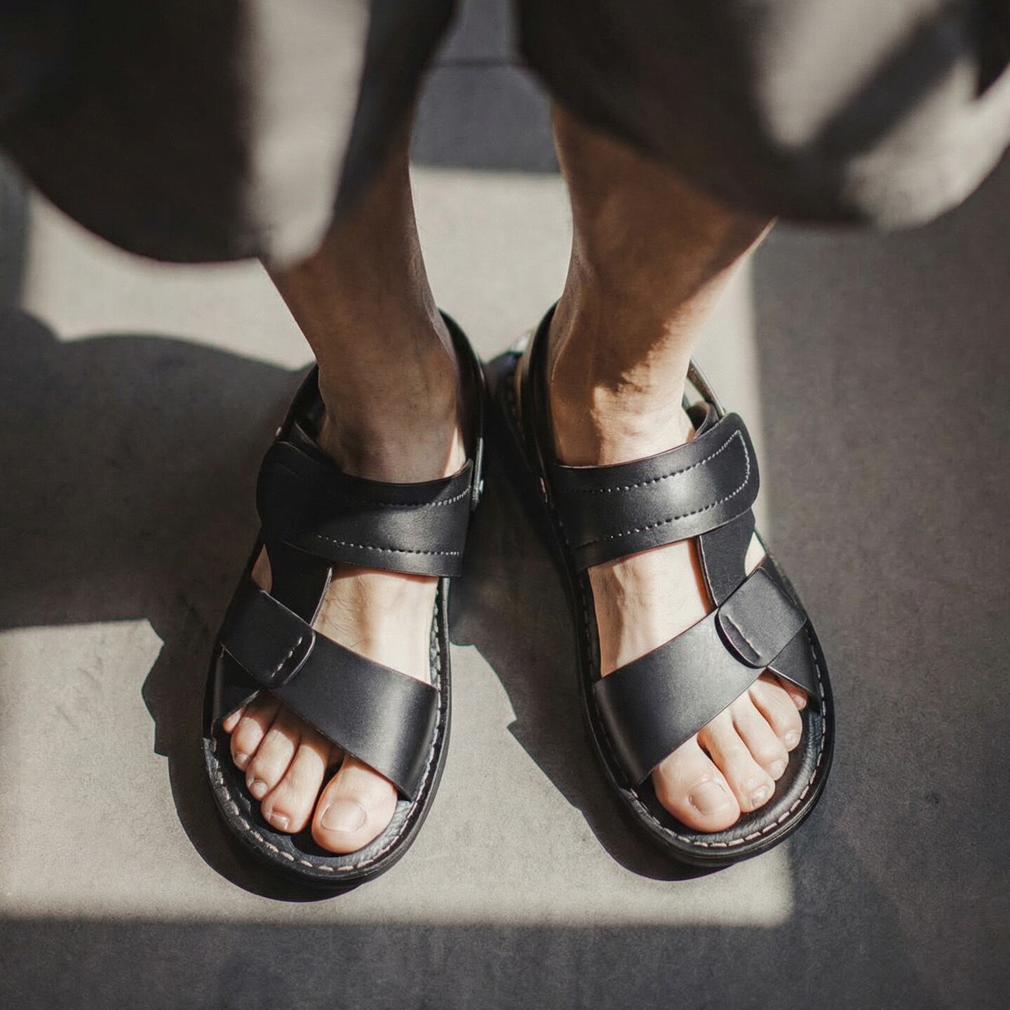Synthetic Leather Cross Strap Sandals / シンセティック レザー クロス ストラップ サンダル