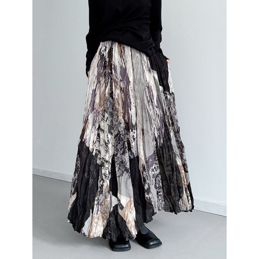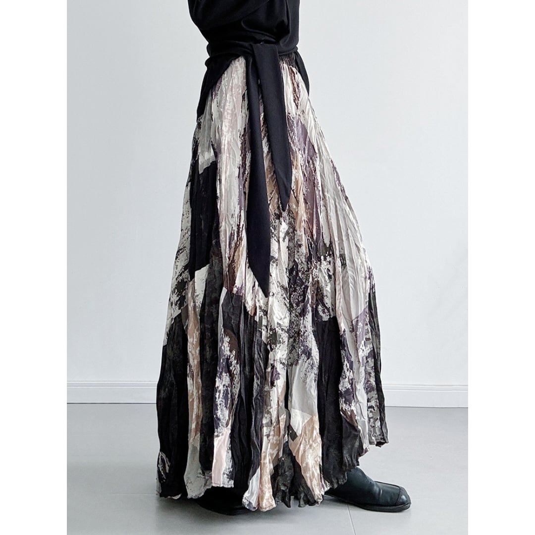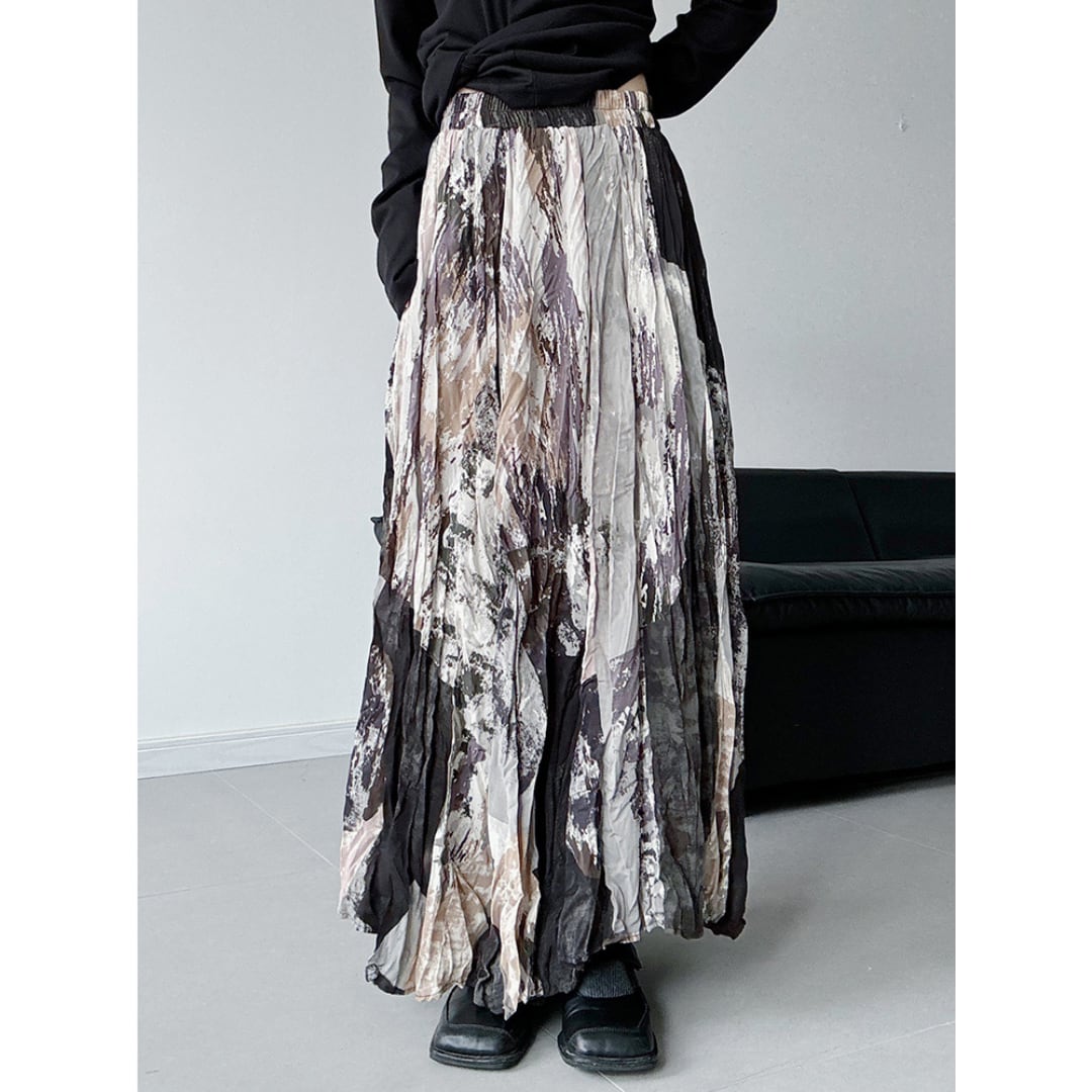 Monochrome Art Pleated Long Skirt / モノクロ アート プリーツ ロング スカート