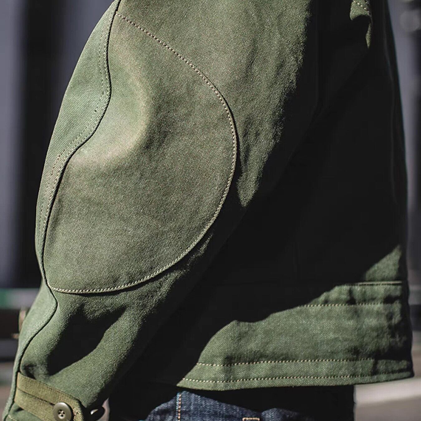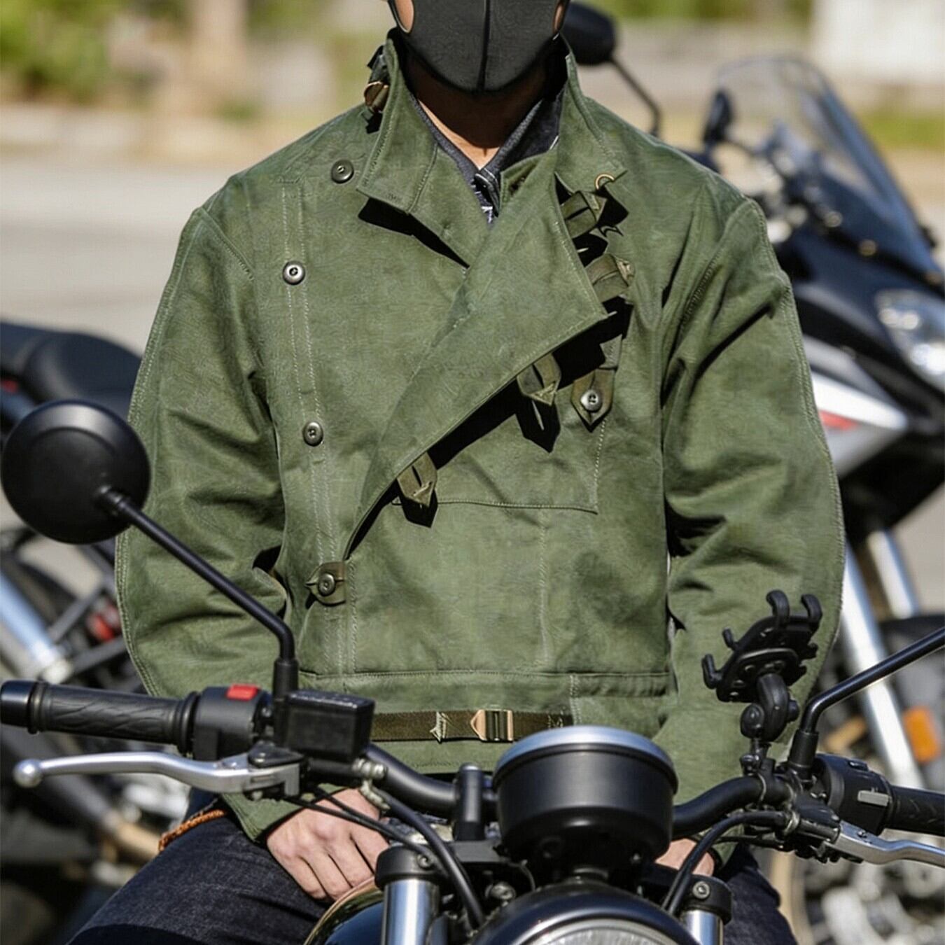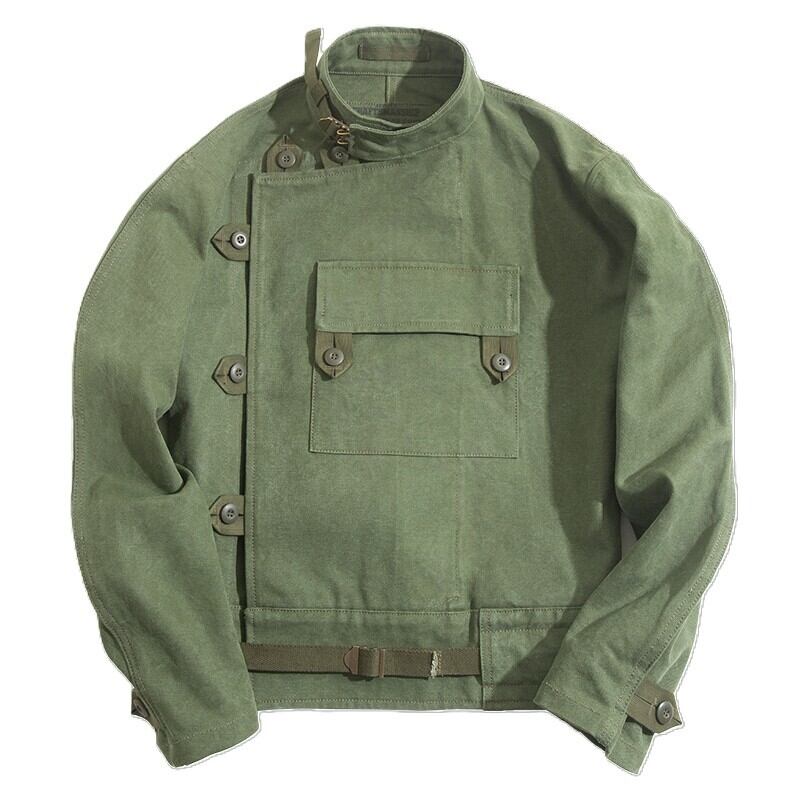 アシンメトリーデザインが印象的なミリタリージャケット。