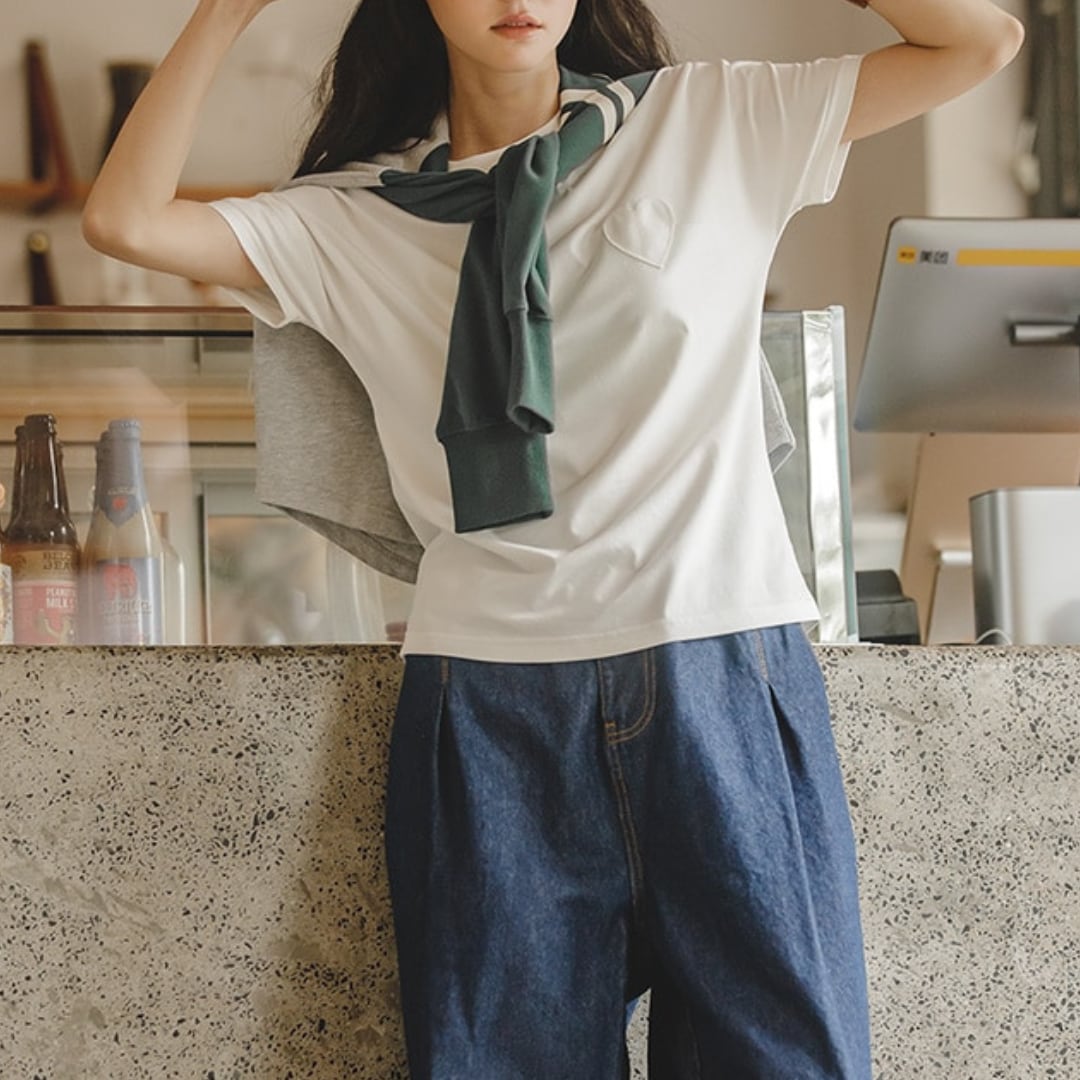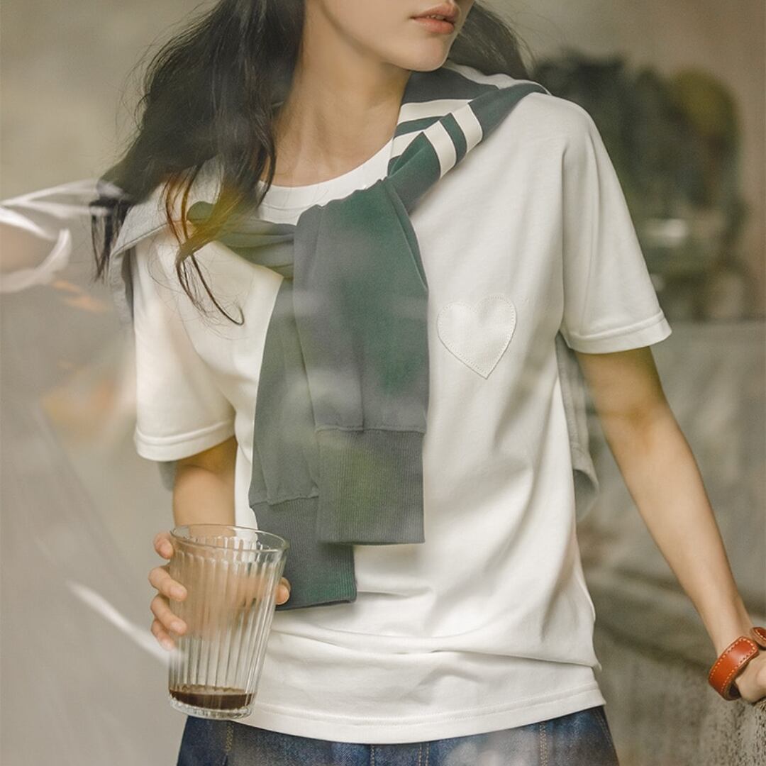 Heart Patch Simple T-shirt / ハート ワッペン シンプル Tシャツ