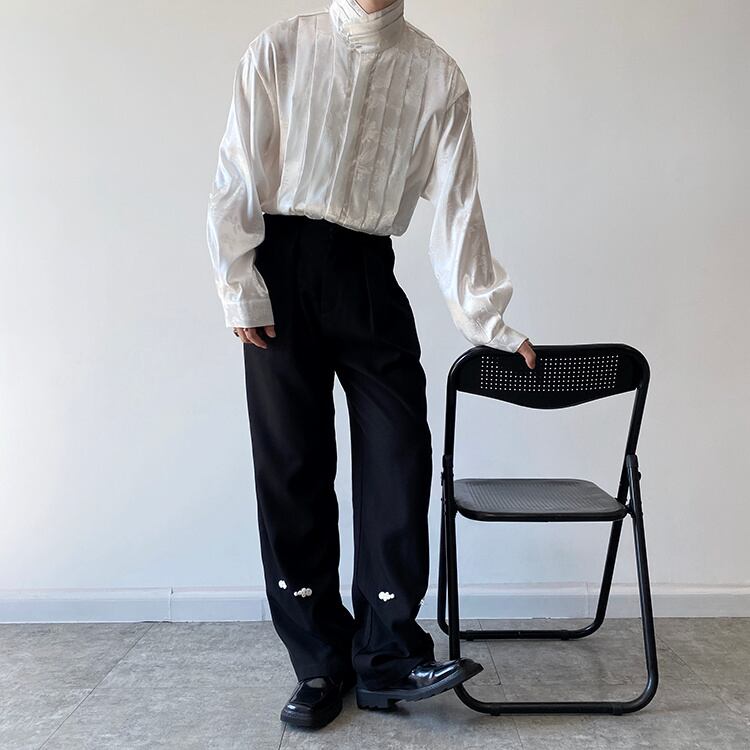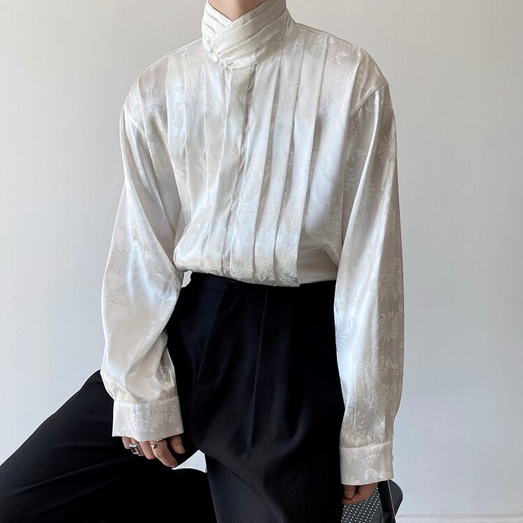 カテゴリー:メンズ ファッション / トップス / シャツ / 長袖 プリーツ スタンドカラー