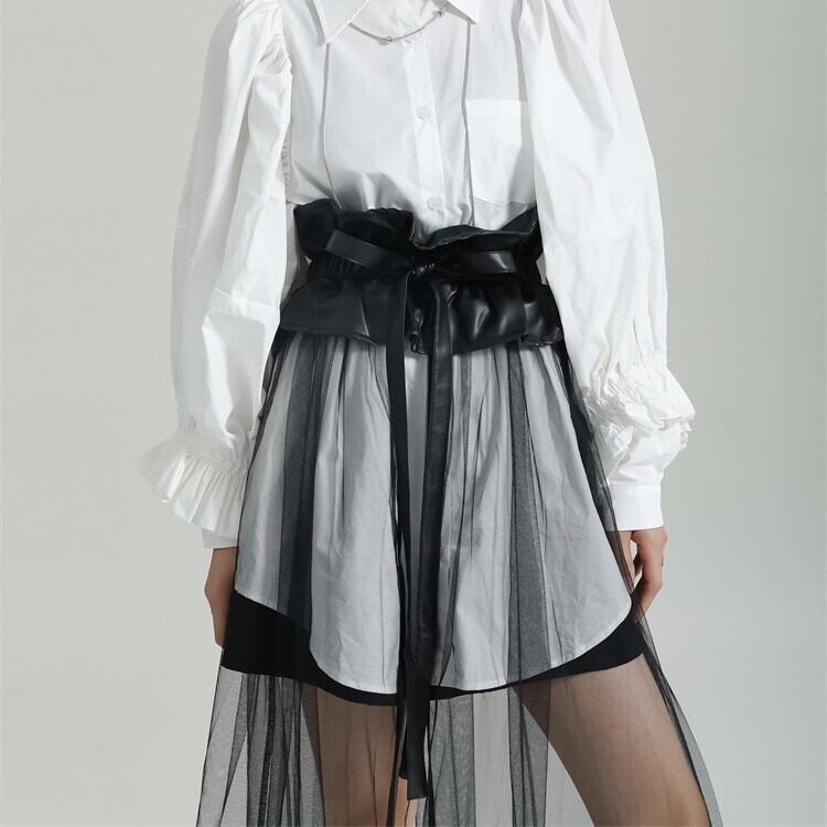 Leather Ruffles Mesh Skirt / レザー フリル メッシュ スカート