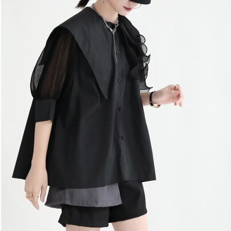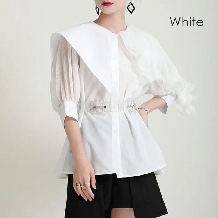 Irregular Ruffle Collar Shirt / イレギュラー フリル カラー シャツ