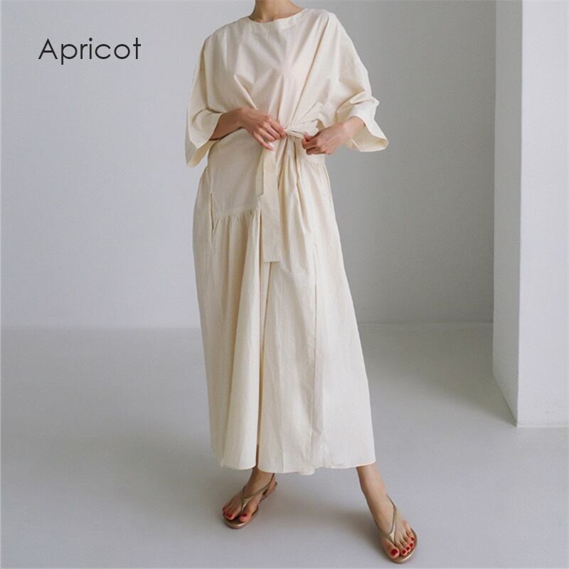Ribbon Knot Simple Long Dress / リボン結び シンプル ロング ワンピース