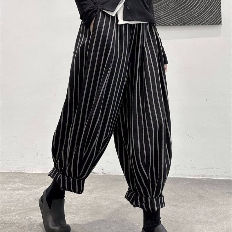 Black Striped Casual Pants / ブラック ストライプ カジュアル パンツ